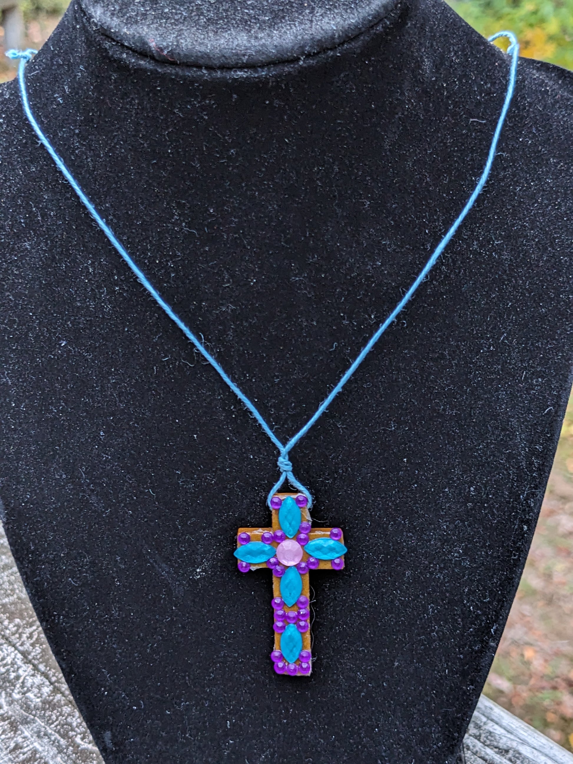 Cross Necklaces on a light blue adjustable lanyards
