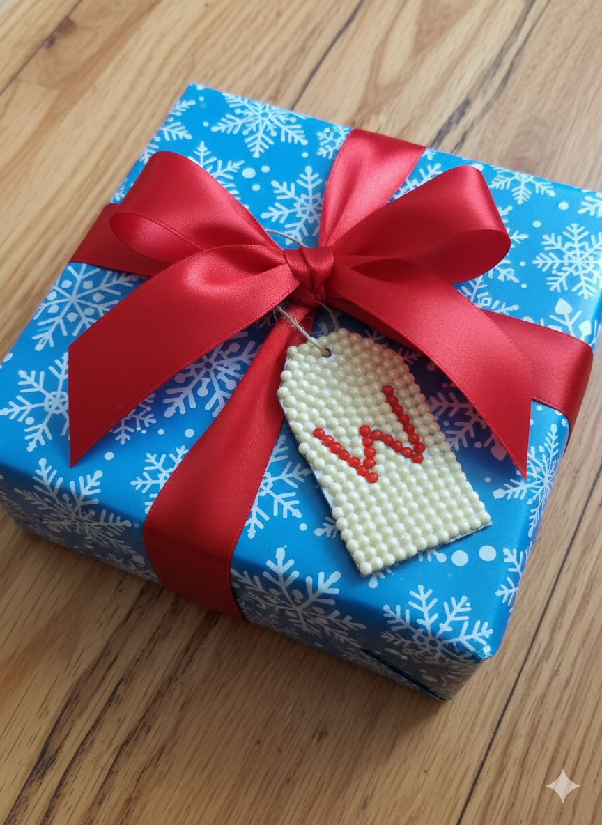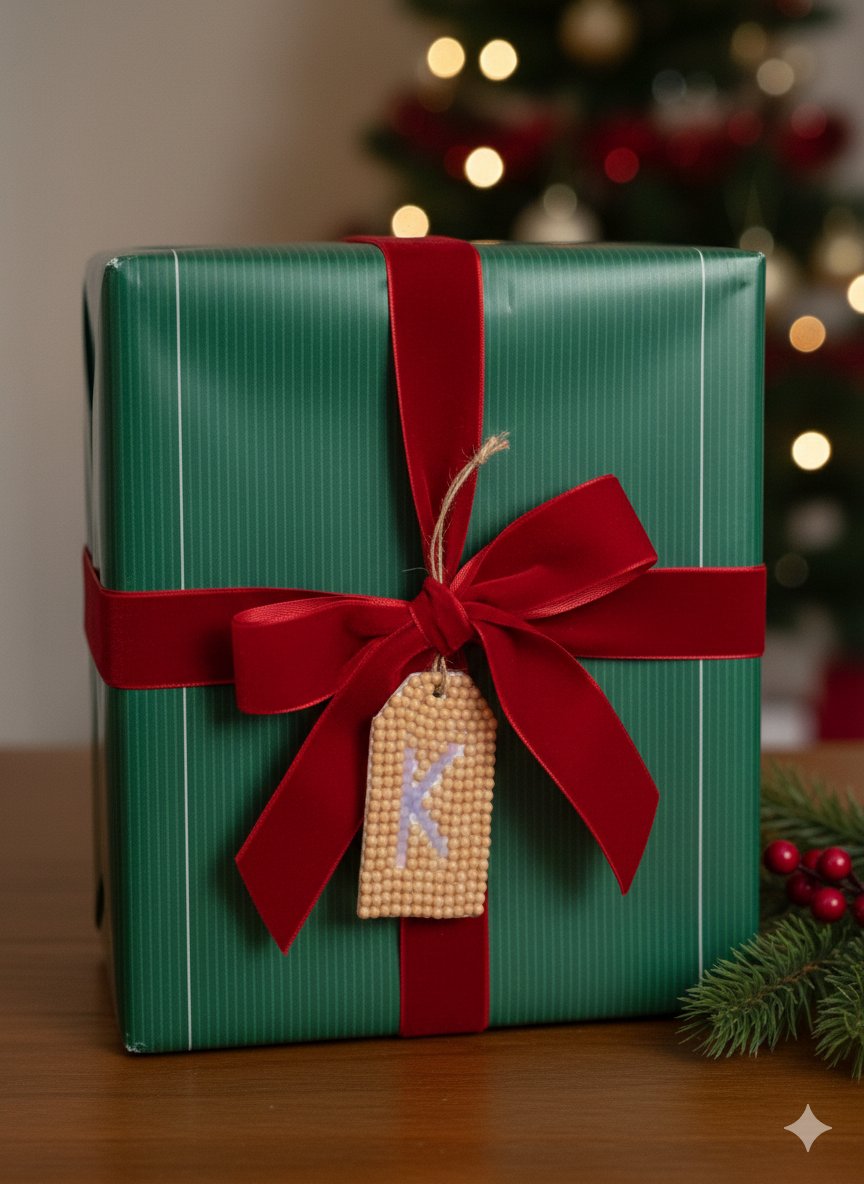 Personalized by day, glowing by night. These hand-set mosaic gift tags are rescued from the thrift and transformed into magical keepsakes. Crafted with specialty glow-in-the-dark gems, they add a stunning, personalized touch to any gift—and continue to shine long after the lights go out.